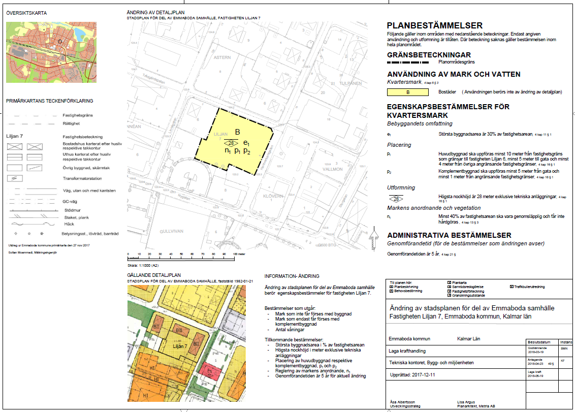 Nyare antagna detaljplaner i Emmaboda kommun finns digitalt. Äldre detaljplaner kan du få ta del av genom att kontakta kommunen. Kontakta kommunens Samhällsutvecklingsavdelning via Besökscenter om du har frågor om detaljplaner.