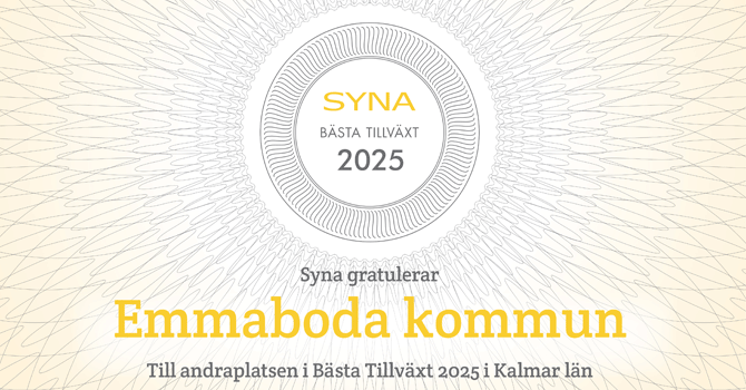 Emmaboda kommun tar hem en hedrande 2a plats Bästa Tillväxt 2025 i kreditupplysningsföretaget Synas granskning av svenska aktiebolags bokslut. Stabil utveckling i näringslivet premieras och kommuner där många företag växer lyfts fram.