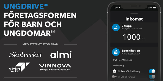 Vi erbjuder UngDrive företagsformen för barn och ungdomar. Som hjälpmedel finns UngDrive-appen och STARTA-event.