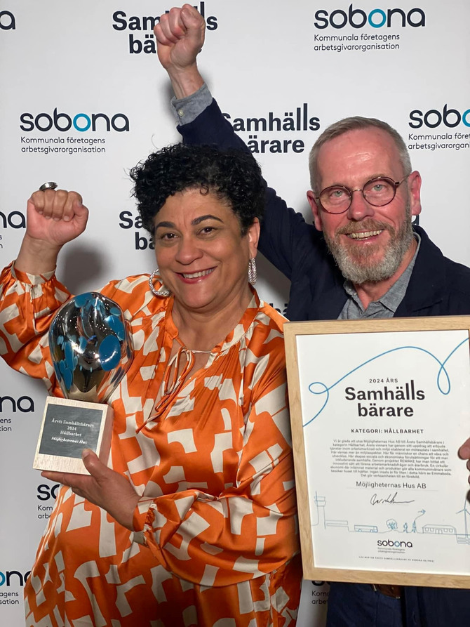- Vi är otroligt glada och stolta över att ha vunnit Årets Samhällsbärare i hållbarhet! Ett stort tack till Sobona för att ha erkänt vårt arbete och till alla som har stöttat oss på vår resa. Detta pris är en bekräftelse på vårt engagemang för hållbarhet och samhällsservice och att vi är gör rätt, säger Tommy Persson, vd Möjligheternas Hus AB.