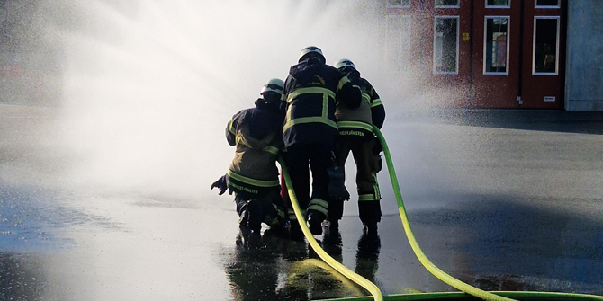 Räddningstjänsten övar med rök i centrala Emmaboda.