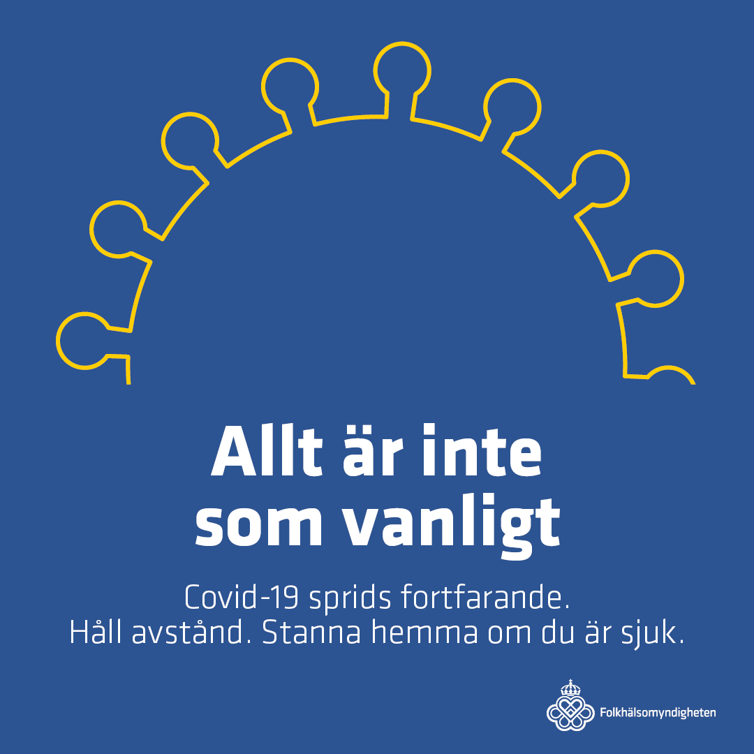 Covid-19 sprids fortfarande. Håll avstånd. Stanna hemma om du är sjuk.
