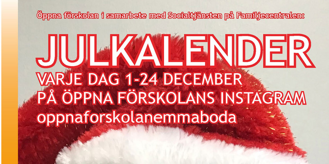 För tredje året drar Familjecentralens digitala julkalendern igång den 1 december på Instagram, oppnaforskolanemmaboda.