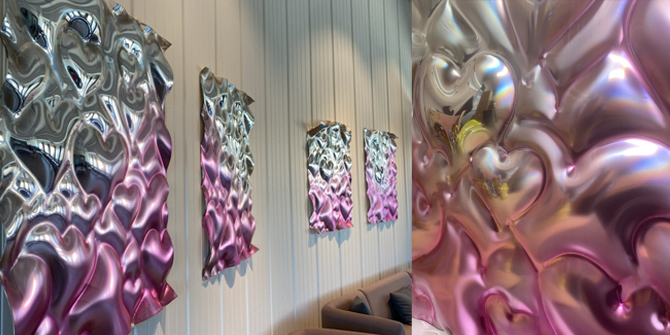 installation av planglas. Installationen heter #emmabodaivårahjärtan och är en hyllning till förändring och samverkan. Hjärtat blir en symbol och ett mönster som utgör verket. Installationen består av fyra taktila glasskivor.