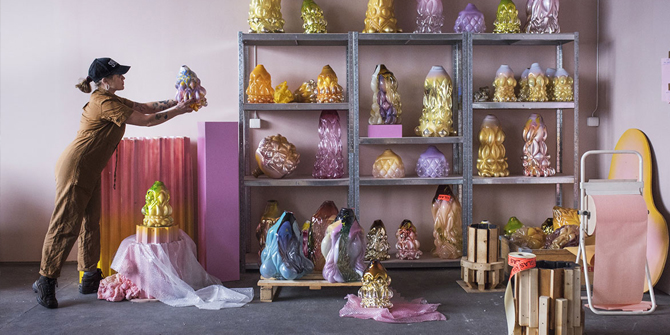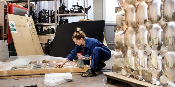 Hanna Hansdotter i ateljén i The Glass Factory.