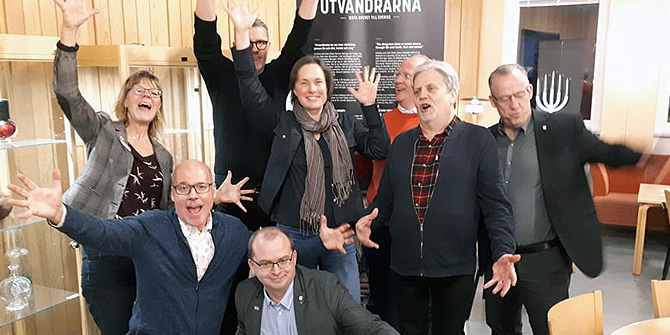 Kommunens kulturchef Jan Dzedins hade samlat bl.a. kommunalråd Johan Jonsson, kommunchef Anders Svensson, Bildningsnämndens ordförande Emma Åhlander Hansson, vice ordförande Jan-Olov Jäghagen, museichef Ulf Ogenbrant, kulturskolechef Ann-Charlotte Odlingson, och Bildningsförvaltningens chef Lennart Werner m.fl. i kommunhuset och gruppen kunde under stor spänning, följt av jubel, ta emot utnämningen.